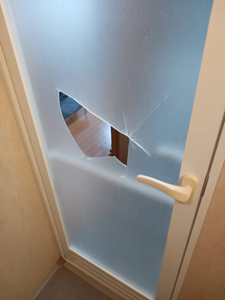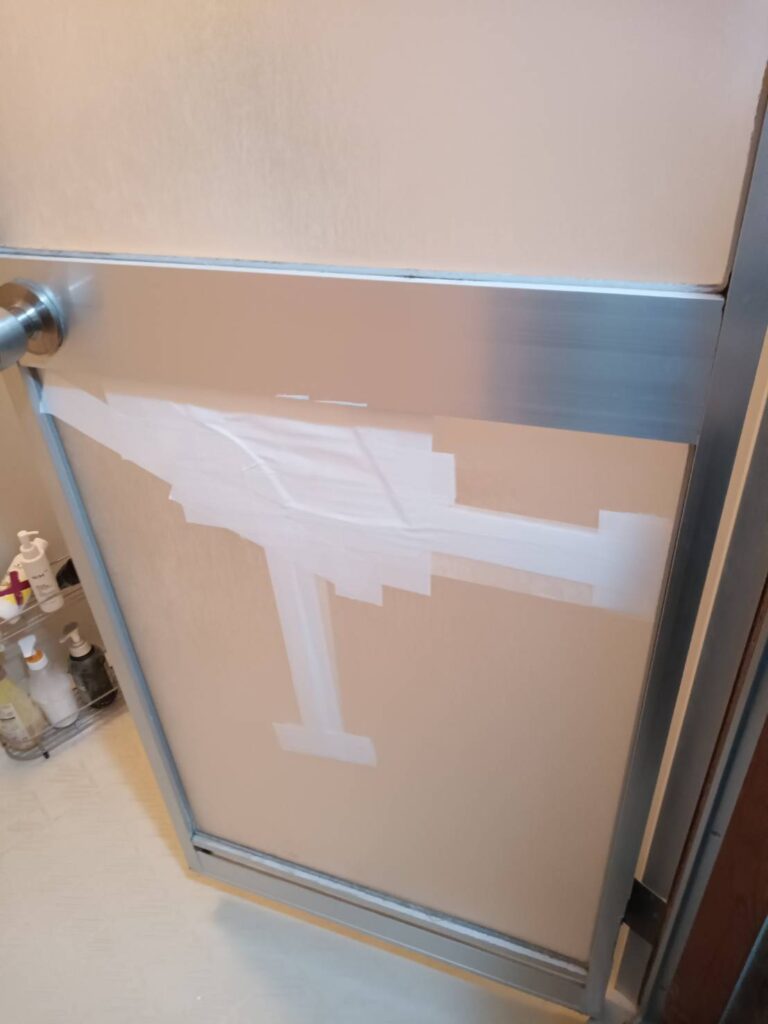 宇部市で「浴室折れ戸のアクリルが割れた」「浴室ドアの樹脂パネルがヒビ割れしている」「メーカーにドアごと交換と言われた」などのお困りは、MADOSUKEガラス店へご相談ください。