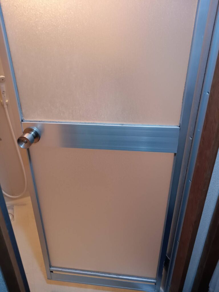 アルミサッシ浴室開きドアアクリル交換