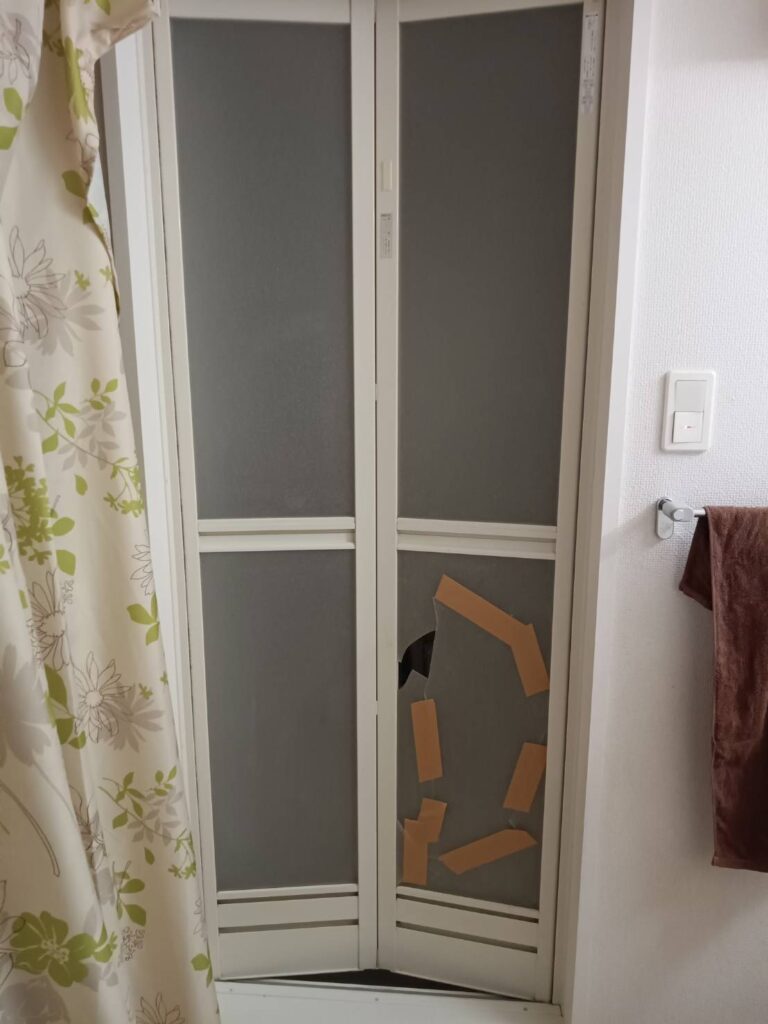 宇部市の浴室折れ戸アクリル修理・浴室ドア樹脂パネル交換|MADOSUKEガラス店