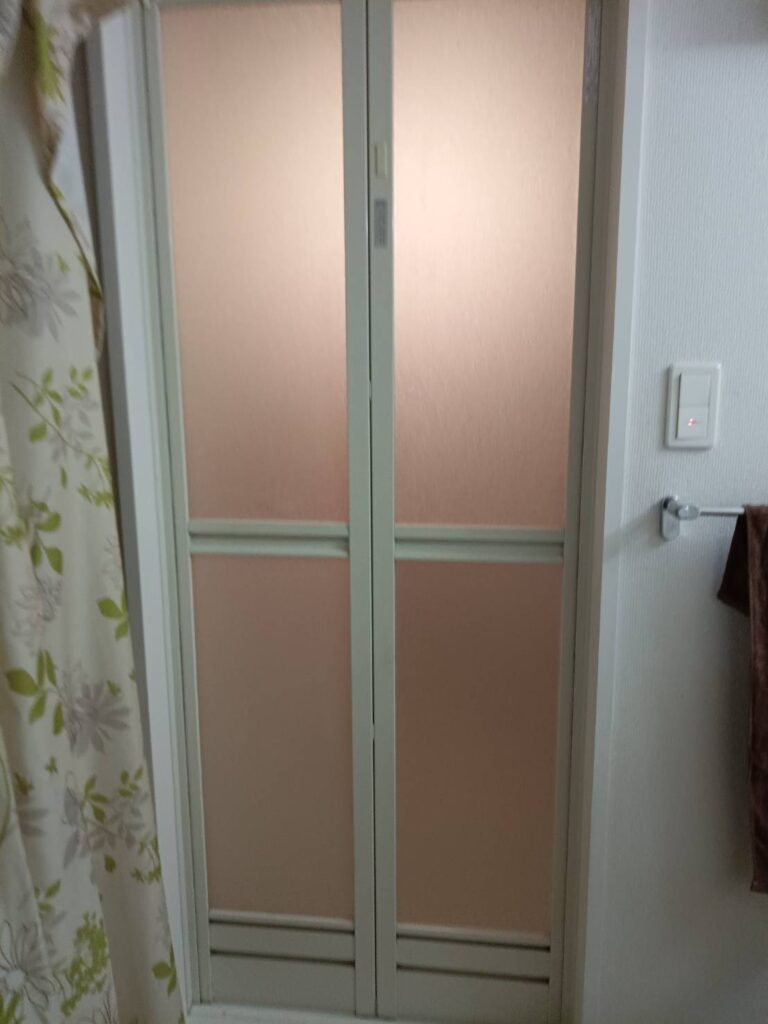 浴室折れ戸・浴室ドアのアクリル板は、構造によってはドア本体交換ではなくアクリル板のみ交換修理できる場合があります。メーカーや型式、固定方法を確認しながら、安全に作業できる場合のみ交換修理に対応しております。