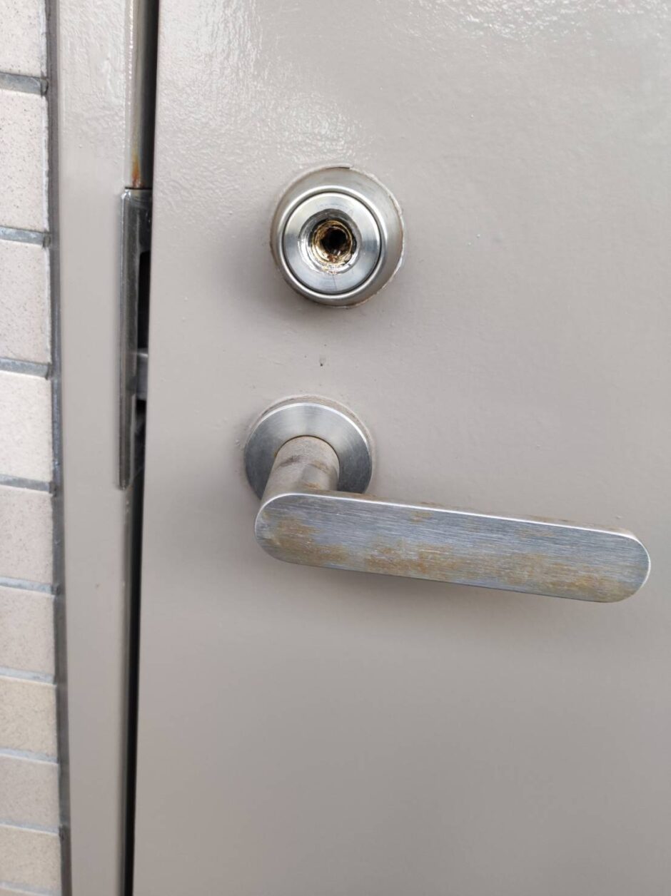 シリンダー交換に至った理由は、カギ紛失です。お客様はポケットにしまっていたはずのカギをどこかに落としてしまったようで、近い当店にご連絡して頂けたようです。